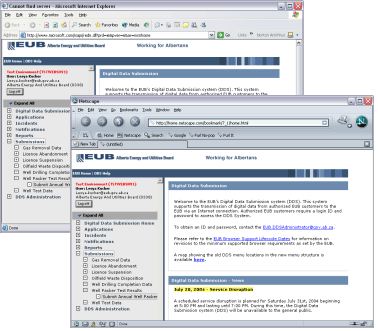 Shown here two of the most popular Browsers displaying a DDS page. Both (Internet Explorer 6 and Netscape Navigator 7) provide good support for the W3C standards and are equally viable for accessing DDS services.