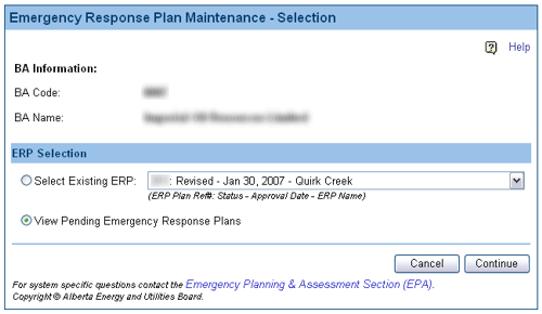 If you chose the Select Existing ERP option, the Emergency Response Plan Maintenance screen will open.