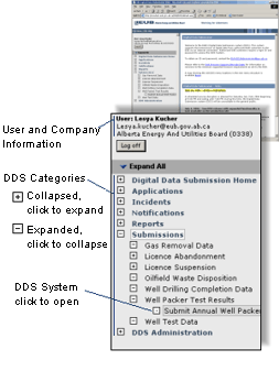 The DDS Navigator provides you with quick access to all of the DDS functions. The navigator is an explorer-type menu that groups functions by the nature of the communication with the EUB (applications, incidents, notifications, etc.) and then according to the type of information being considered.