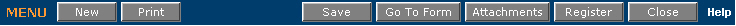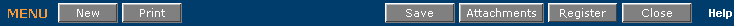 The main toolbar stays at the top of every schedule. Use the buttons to process the information you enter and register the application.