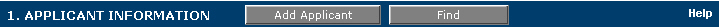 Toolbars are also used in some schedules/forms to act on that section's information only. For Resources applications, for example, 1. Applicant Information in Schedule 1 has the following toolbar.